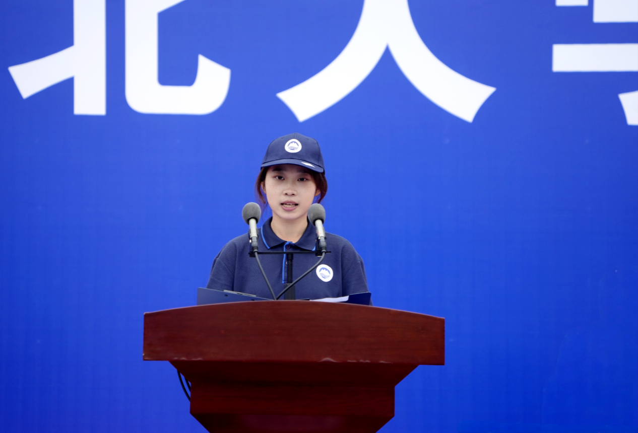 本科新生代表梁诗滢分享了初入校园的喜悦和对未来学习的期待,并以独立思考、持之以恒、拥抱未来等关键词与同学们共勉,号召大家拿好“接力棒”,以奋斗之笔书写精彩人生。