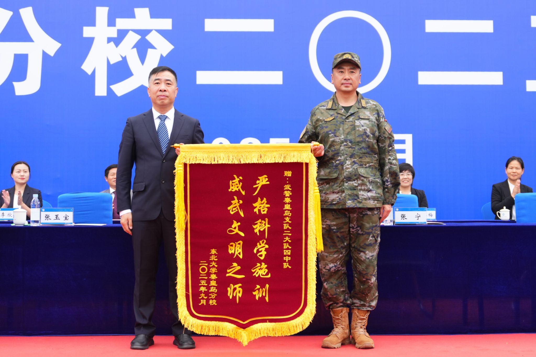 9月27日,东北大学秦皇岛分校2025级学生开学典礼在东体育场举行。东北大学校长冯夏庭,武警秦皇岛支队大校支队长张宁,东北大学党委副书记、秦皇岛分校党委书记张玉宝,东北大学校长助理、秦皇岛分校校长赵勇,东北大学校长助理刘延晖,分校领导班子成员、关工委常务副主任、各学院和有关部门负责人,武警秦皇岛支队承训教官等出席大会。3500余名2025级本科生、研究生和留学生新生参加典礼。赵勇主持典礼。
