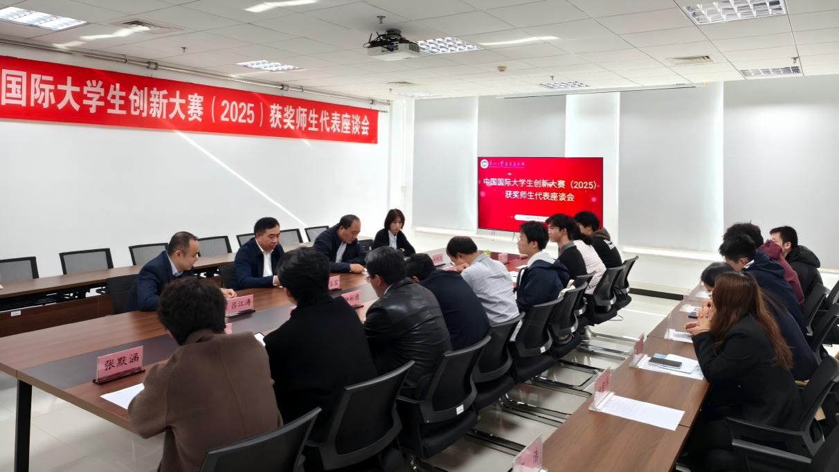 10月21日,我校在科技楼9025室召开中国国际大学生创新大赛(2025)获奖师生代表座谈会。校党委书记张玉宝、副校长伊廷锋出席会议,大学生创新创业中心负责人及获奖师生代表参加会议。