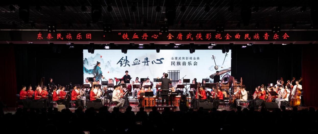 音乐会在《你好!东大》的悠扬旋律中拉开帷幕。本场音乐会由山西省歌舞剧院民族乐团常任指挥、青年指挥家郭明与我校民族乐团指导教师秦河海联袂执棒。我校民族乐团倾情演绎了十二首武侠金曲。从《沧海一声笑》的豪迈洒脱,到《铁血丹心》的壮阔激昂,再到《刀剑如梦》中唢呐与琵琶交织出的武林风云,演奏者们用饱满的情感和精湛的技艺,引领现场观众沉浸于武侠世界,感受民族音乐与侠义精神的共鸣。现场掌声经久不息。
