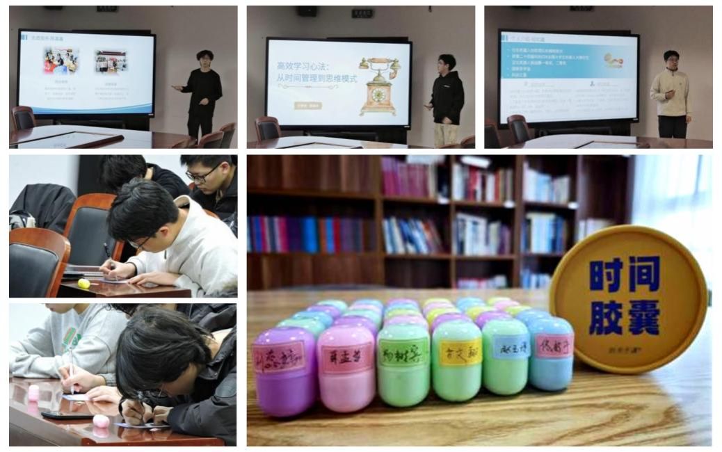 班会上,师生通过图文回顾的方式,系统梳理了入学以来在思想成长、学业精进、科创探索、生活实践等方面取得的进步。学生代表踊跃发言,分别结合志愿服务、专业学习、科创竞赛等经历,分享了各自的成长体悟与实践收获。活动中,同学们将个人发展目标与未来期许书写成文,封存于“时间胶囊”之中,相约毕业时共同启封,以此形成跨越时空的成长激励。