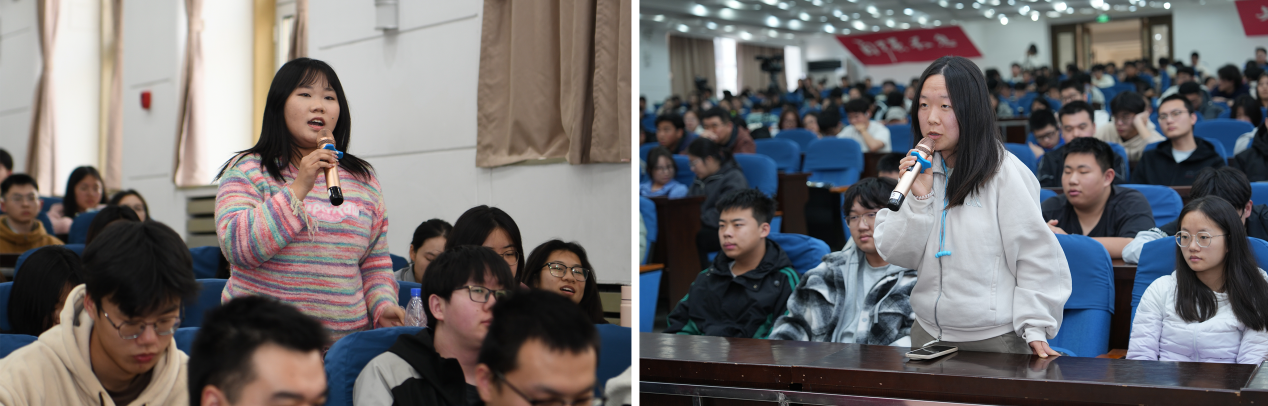 在互动提问环节,同学们围绕“科学家精神传承”“钱学森先生生平事迹”等话题踊跃提问,钱永刚一一解答并在讲座结束后为我校学子题词寄语:“热爱祖国、崇尚科学、追求真理、报效人民。录钱学森语,与东北大学秦皇岛分校全体同学共勉!”