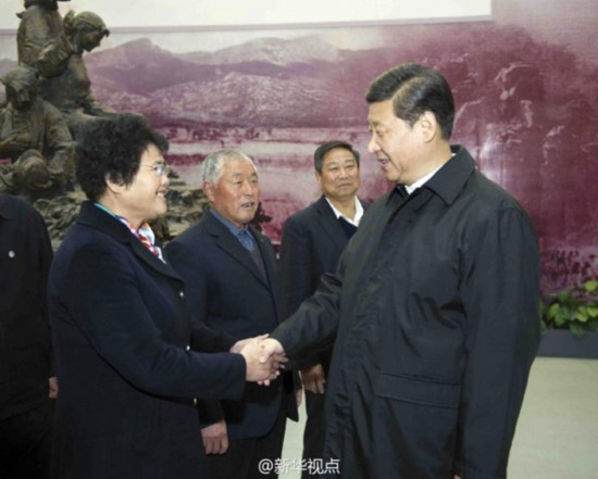 新华网北京11月25日电 据新华社“新华视点”微博报道,习近平25日来到位于山东临沂的华东革命烈士陵园,向革命烈士纪念塔敬献花篮,并参观沂蒙精神展。在展厅会见了“沂蒙母亲”王换于孙女于爱梅等模范人物。他表示,这次来沂蒙就是看望老区人民,重温沂蒙精神。革命胜利来之不易,主要是党和人民水乳交融,党把人民利益放在第一位,为人民谋解放,人民跟党走,无私奉献,可歌可泣啊!沂蒙精神要大力弘扬。