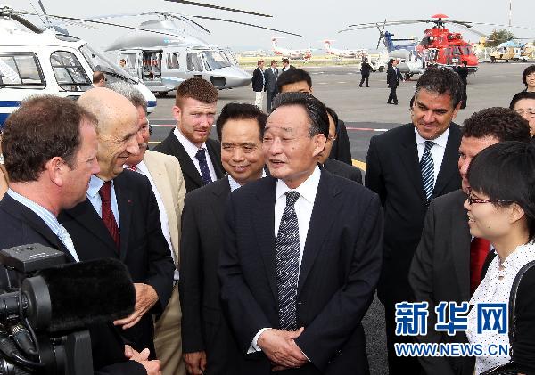 7月13日,正在法国进行正式友好访问的全国人大常委会委员长吴邦国在马赛参观欧洲直升机公司。 新华社记者 鞠鹏 摄