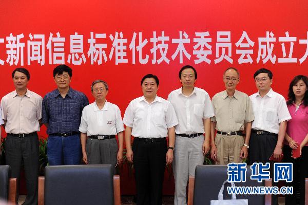 7月15日,国家标准委副主任方向(右四)、全国中文新闻信息标准化技术委员会主任委员鲁炜(左四)等在全国中文新闻信息标准化技术委员会成立大会上。新华社记者 金良快 摄