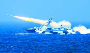 上为战舰发射舰空导弹拦截来袭导弹。下图为新型导弹艇在演练中对海上目标发射反舰导弹。这次演练不仅探索了新战法新训法,还检验了海空协同综合攻防作战能力。新华社发