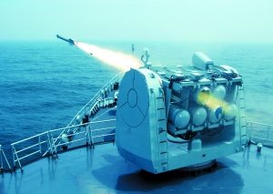 随着编队指挥员一声令下,海上战舰和空中战机发射出的一枚枚导弹飞向“敌”舰,实施有效打击;一批批来袭导弹被我舰艇编队和空中编队战机及时捕获锁定,用导弹和炮火将其击落。
