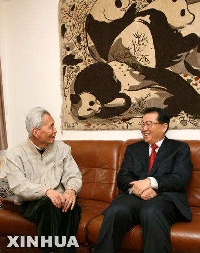 2006年1月23日, 中共中央政治局常委李长春在北京看望著名画家吴冠中,代表胡锦涛总书记和党中央向他致以节日问候和良好祝愿。 新华社记者刘建生摄