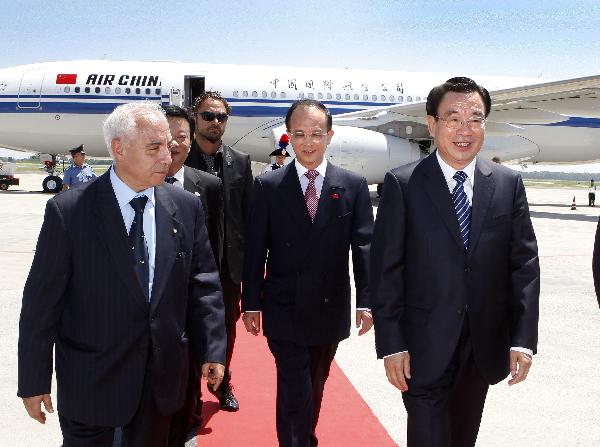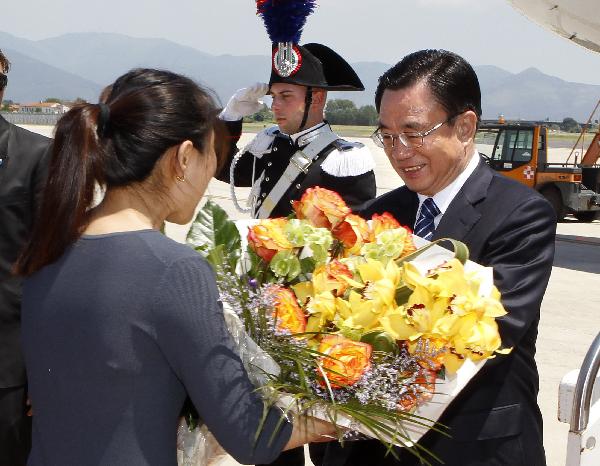 6月5日,中共中央政治局常委、中央纪委书记贺国强抵达比萨,开始对意大利进行正式友好访问。 新华社记者 刘建生 摄