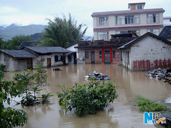 这是恭城瑶族自治县栗木镇上宅村被淹的房屋(5月14日摄)。受冷暖空气共同影响,5月13日至14日广西北部地区出现强降雨天气,部分地区出现200毫米以上特大暴雨。受强降雨影响,广西局部地区出现洪涝等次生灾害。新华社发(文建军 摄)