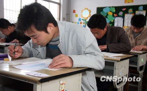 4月25日,2010年山东省公务员考试录用公共科目笔试在全省17个地市同时举行。考试报考人数为40.8万人,比去年增长4.4%,竞争8619个职位。这是山东省实行公务员考录制度以来,规模最大、人数最多的一次考试。 中新社发 吉 喆 摄
