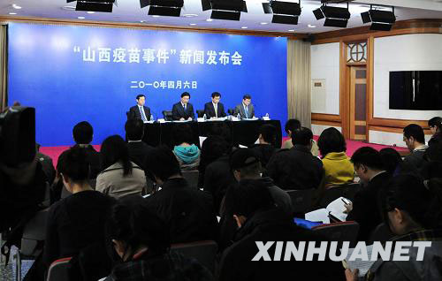 4月6日,卫生部和国家食品药品监管局在北京举行新闻发布会,通报“山西疫苗事件”有关情况。 新华社记者 何俊昌 摄