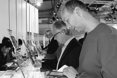 正在中国主题馆试用汉王电纸书的外国参展商。张贺/摄 传统纸质图书的出版,中国尚处落后位置;但数字化出版,中国已和先进国家处于同一起跑线,有的技术甚至领先世界 2009年,中国数字出版总产值将首次超过纸质出版产值;2030年,预计90%的中国出版物都是电子出版物 同一起跑线的比拼 书展上,60台电纸书组成的强大阵容,壮观惹眼。每天从开展到闭馆,总有观众在这里看来看去,爱不释手。由汉王科技推出的电纸书产品,内置3000本正版图书,一册在手相当于随身携带一座图书馆。汉王公司的董事长刘迎建说:“传统纸质图书的出版,中国可能有些落后,但数字化出版,中国已和先进国家处同一起跑线,有的技术还居于领先位置。”他预计,到2030年,90%的中国出版物可能都将是电子出版物。 目前,数字化出版已成中国出版业的新增长点。据新闻出版总署统计,截至2008年底,中国578家图书出版社中已有90%开展了电子图书出版业务,出版电子图书约50万种,与2007年相比,增长了25%;电子书发行总量超过3000万册,收入达3亿元,同比增长50%,中国数字出版业的整体收入达到530亿元,比2007年增长46.42%。有关方面预测,2009年中国数字出版总产值将达750亿元,将首次超过纸质出版的产值。 国际上,数字出版同样发展迅猛。许多欧美知名图书公司也推出电子书,供读者付费下载。美国《基督教科学箴言报》等报纸,干脆不再出纸质报纸,仅提供网络版。出版的网络化、数字化已成为一股不可遏抑的潮流。而这一次,中国搭上了这趟快车。