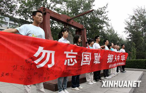 9月18日,南开学子拉起“勿忘国耻 振兴中华”条幅。当日,天津南开大学的学生举行纪念“九·一八”事变78周年活动,警示人们勿忘国耻、居安思危。新华社发(李想 摄)