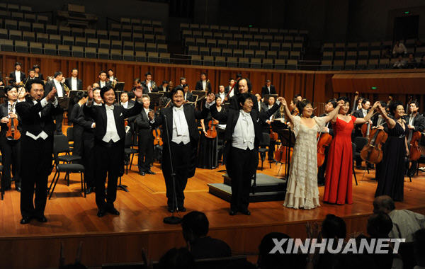 新华网北京9月8日电(记者廖翊)以合唱《我和我的祖国》开场,以齐唱《歌唱祖国》谢幕,8日晚,“海外华人歌唱家颂祖国音乐会”在北京国家大剧院举行。这是《向祖国汇报——庆祝中华人民共和国建国六十周年献礼演出》中唯一一场海外华人艺术家的献礼演出,也是首届亚欧文化艺术节的重要组成部分。 当晚,高曼华、袁晨野、蔡大生、杜吉刚、丁毅、杨光、陶英等7位享誉海内外的华人歌唱家轮流登场。 上半场,他们为观众献上西方经典歌剧《浮士德》《卡门》《塞维利亚的理发师》中的代表唱段,充分展示了中国歌唱家跻身世界歌剧舞台的卓越才华。下半场,歌唱家们倾力演唱了新中国成立后中国作曲家吟咏祖国的代表作。当《我爱你中国》《那就是我》《大海啊故乡》《乡音乡情》《祖国慈祥的母亲》《长江之歌》等熟悉的歌声回荡在音乐厅时,全场不断激起长时间热烈掌声。演至最后曲目《歌唱祖国》,成为华人歌唱家们与全场观众的合唱,场景十分感人。 十年前,在新中国成立50周年之际,海外华人歌唱家便在北京等地举办《海外华人歌唱家颂祖国音乐会》,获得极大反响。在新中国成立60周年之际,这些驰名国际乐坛的海外歌唱家重聚一堂,表达炽热深沉的祖国之恋,成为《向祖国汇报——庆祝中华人民共和国建国六十周年献礼演出》浓墨重彩的篇章。