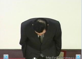 马英九18日召开记者会,九十度鞠躬致歉。图片来源:台湾“今日新闻”