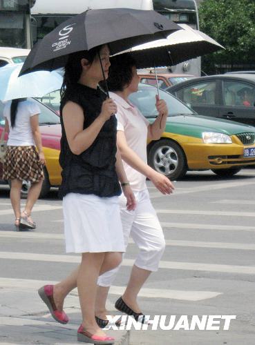 7月3日,北京市民在高温的大街上行走。当日,北京气象台发布高温橙色预警信号,受暖气团影响,京城大部分地区最高气温升至37摄氏度以上,进入7月以来,京城已经连续三天气温高于35摄氏度。新华社记者陈树根摄