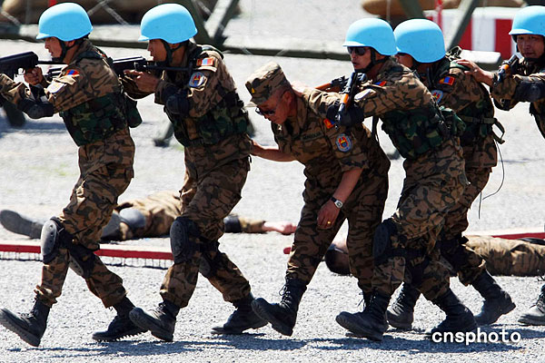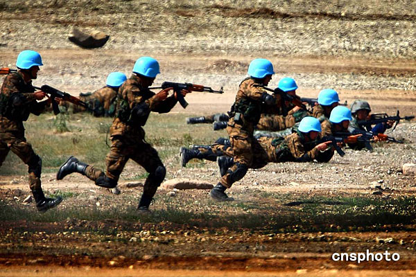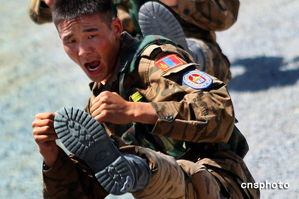 7月3日,中国和蒙古首次举行维和联合军事训练,以执行联合国框架下维和任务为背景,在北京地区某训练场开展多种综合演练。