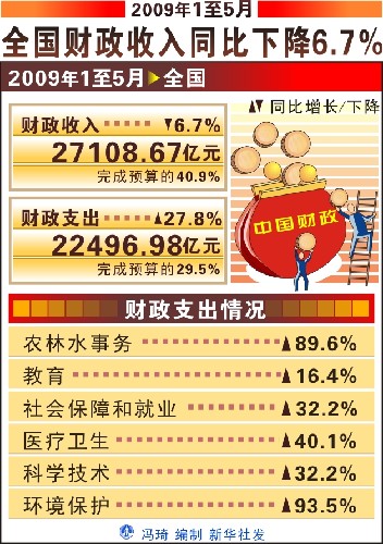 图表:2009年1至5月全国财政收入同比下降6.7% 新华社发