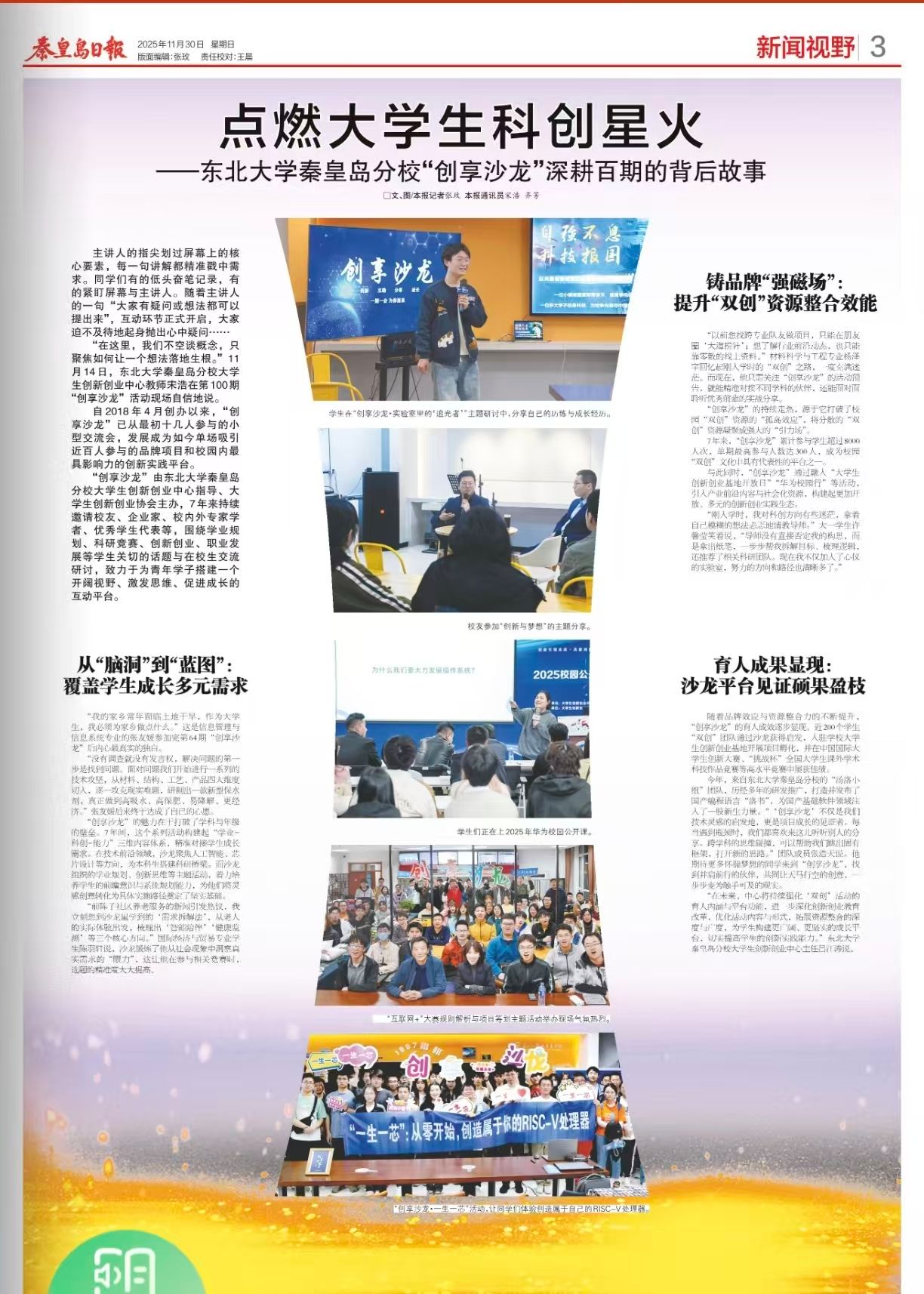 “在这里,我们不空谈概念,只聚焦如何让一个想法落地生根。”11月14日,东北大学秦皇岛分校大学生创新创业中心教师宋浩在第100期“创享沙龙”活动现场自信地说。