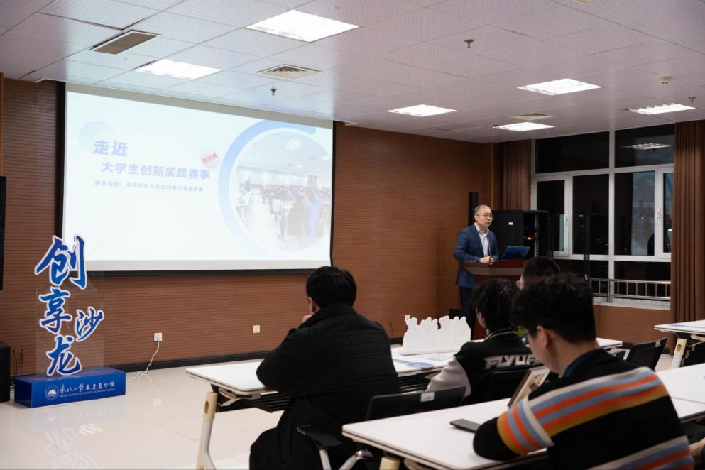 3月27日,由大学生创新创业中心指导、大学生创新创业协会主办的2026年中国国际大学生创新大赛宣讲会在科技楼9024室举办。我校优秀创新创业指导教师韩鹏担任主讲人,200余名学生参加宣讲会。韩鹏结合多年指导经验,系统解读参赛要点与注意事项,并从选题、打磨、落地三个环节,详细介绍打造优秀项目、高质量备赛的具体路径。他还以往届优秀作品为例,解析备赛中的常见难点与疑问,为学生备战2026年中国国际大学生创新大赛明晰思路、提供方法。