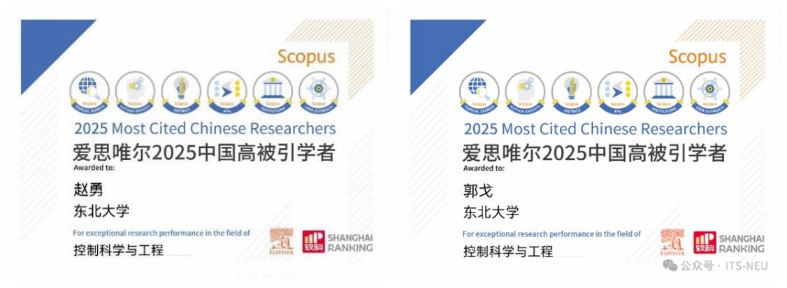 1月30日,爱思唯尔(Elsevier)正式发布2025“中国高被引学者”(Highly Cited Chinese Researchers)榜单,来自543所高校、企业及科研机构的6310位学者上榜,覆盖了教育部10个学科领域、83个一级学科。我校赵勇、郭戈两位教授连续荣登榜单。