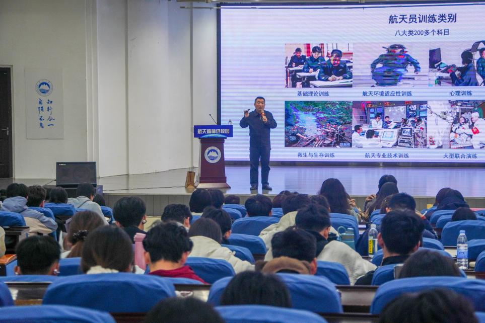 报告会上,吴杰以《矢志航天 为国奉献》为题作专题报告。他系统回顾了中国载人航天从艰难起步到圆梦太空的壮阔历程,深情讲述了神舟五号首飞、神舟七号出舱等重大里程碑事件背后的奋斗故事。他还讲述了自己从空军飞行员到首批航天员、航天员教练,再到航天科普公益传播者的人生经历,生动诠释了“特别能吃苦、特别能战斗、特别能攻关、特别能奉献”的载人航天精神。