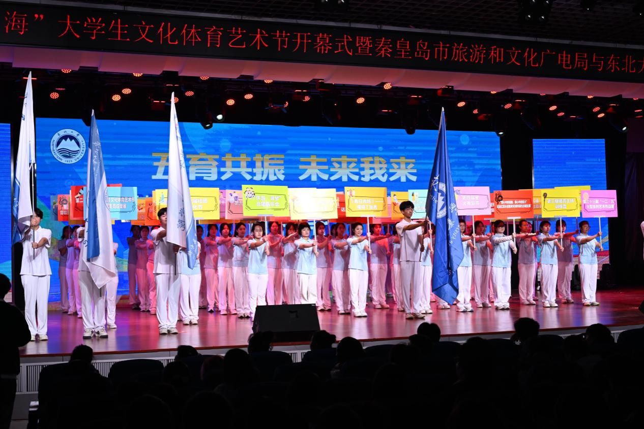 4月18日,“五育共振,未来我来”第十九届“如意山海”大学生文化体育艺术节开幕式暨秦皇岛市旅游和文化广电局与东北大学秦皇岛分校“联学共建”揭牌仪式在大学会馆大学生礼堂举行。东北大学党委副书记、秦皇岛分校党委书记张玉宝,秦皇岛市旅游和文化广电局副局长马猛,如意山海酒店管理有限公司总经理霍伟军,东北大学秦皇岛分校学生会执行主席孙克让出席仪式并为大学生文化体育艺术节启幕。