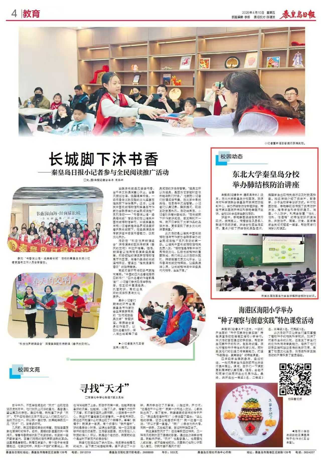 本报讯(记者李娜 通讯员郭凯)近日,东北大学秦皇岛分校医院、资源与材料学院联合秦皇岛市疾病预防控制中心,举办肺结核防治专题讲座,特邀市第三医院肺病三科李艳静医师主讲,全校220余名学生参加活动。